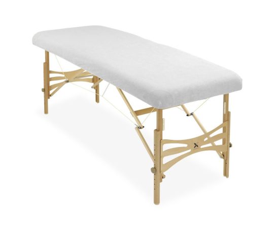 Husa este realizata din tesatura terry de calitate superioara, care absoarbe lichide precum transpiratia sau uleiurile, asigurand astfel confort pacientilor in timpul sedintei de masaj.
