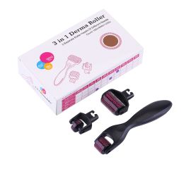 Rola dermatologica cu 3 capete interschimbabile cu 180, 600 si 1200 microace din otel inoxidabil, derma roller