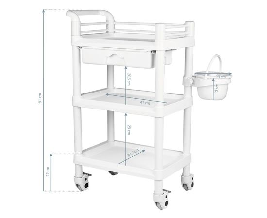 Ucenic cosmetic mobil HAGA cu 3 rafturi + container mic pentru deseuri